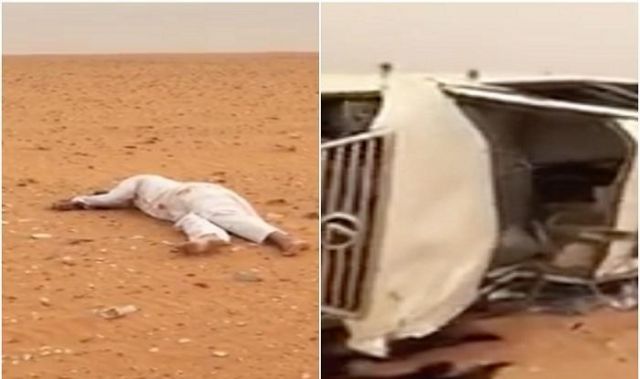 ويبدو في المقطع الثاني الأكثر وضوحاً أنه تعرض لصاعقة رعدية أدت إلى انقلاب سيارته وتحطمها وسط الرمال وتسرب الوقود منها. وتبين أن هذا الحادث أسفر عن وفاته.