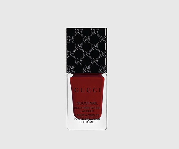 اطلي أظافرك باللون الأحمر الداكن Gucci Bold High-Gloss Lacquer in Dark Romance، وغلّفي اللون بطلاء شفّاف شديد اللمعان Dolce & Gabbana High Shine Nail Coat.
