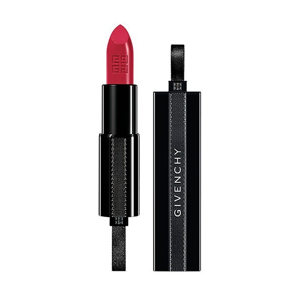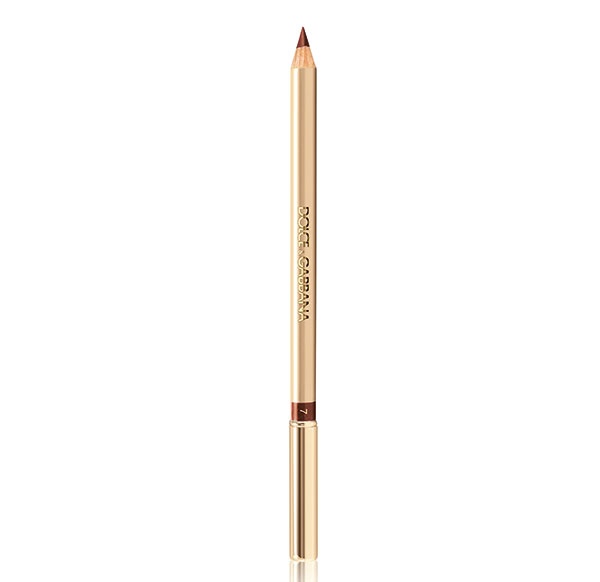 حدّدي شفتيك باللون الأحمر الكرزي الداكن Dolce & Gabbana Precision Lipliner in Ultra no.07، ولوّنيهما بأحمر الشفاه القشدي الطويل الثبات Givenchy Rouge Interdit in Boyish Rose no.10.