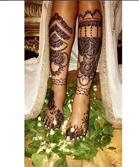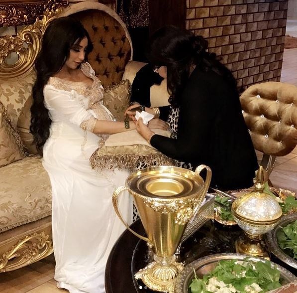 واللافت انها عمدت على رفع القفطان لإظهاررسوم الجنة التي قامت برسمها على قدميها في خطوة أثارت جدلاً واسعاً بين متابعيها، الذين علقوا على الامر باستغراب، لا سيما وانها تحتفل بهذه المناسبة بمفردها وبطريقة غريبة.
