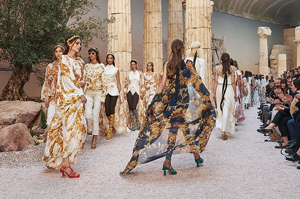 تألف الديكور من أعمدة شاهقة، وشجرة زيتون قديمة وصخور عملاقة، إضافة إلى حفريات محاطة بمبانٍ قيد الترميم. إنه دكور باهظ، إذ احتاج إلى براعة 50 حرفياً، وثلاثة أسابيع من الأعمال. قد يتساءل المرء ما إذا كان من الأفضل تقديم المجموعة في الأراضي اليونانية!