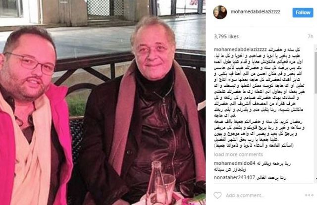 واختتم نجل محمود عبد العزيز رسالته قائلا "رمضان كريم. كل سنة وحضراتكم جميعا بألف صحة وسلامة وخير و ربنا يريح قلوبكم ويشفى كل مريض ويرجع كل بعيد ويصبر أى واحد موجوع ويهون علينا جميعا يا رب بحق الشهر الفضيل...(اسألكم الفاتحة والدعاء لأبويا ولأمواتنا جميعا)".