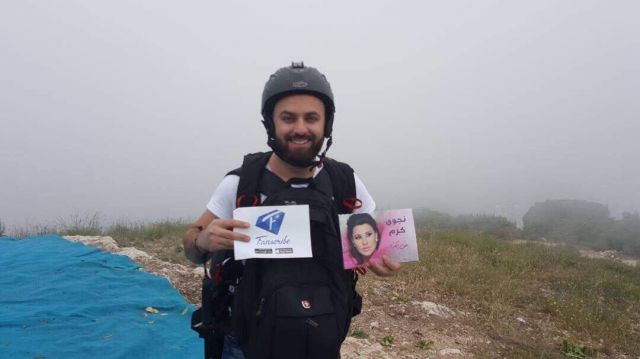 استخدم جو كرم الباراشوت وطار بها فوق جونيه ورمى نحو 5000 "فلايرز" لصورة البوم "شمس الاغنية" واسم تطبيق fanscribe الذي اطلقت عبره البومها فوق المنطقة.