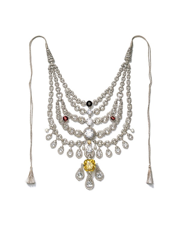 هذا، وترتبط الكنوز المعروضة في المعرض بالحقبة المغولية في الهند، والممتدة من القرن الـ17 الى القرن الحالي، وهي تتميز بالإبداع في تصميم المجوهرات التي كانت الأُسر الحاكمة تتزيّن بها. ويتضمن هذا المعرض قطعاً نادرة مثل ياقوتة تاج محل المصنوعة في الهند بين عامي 1650 و1700 وتزن 141.1 قيراط، وهي من مجموعة آل ثاني، بالإضافة إلى قلادة العنق Choker من مجموعة Cartier، وقلادة Hindu التي صُنعت خصيصاً للسيدة Daisy Fellowes، وميدالية الشاه جيهان، ووجه النمر الخاص بسلطان تيبو، كما تتضمن مجوهرات أوروبية الصنع مستوحاة من الذوق الهندي مثل (الطاووس) من تصميم ميليرو ديتس ميلر، والذي اشتراه المهراجا جاغاتجيت سينغ، الى جانب قطع ثمينة من دار Cartier الراقية، وتشتمل أيضاً على قطع نادرة كماسة عين النمر التي تزيّن عمامة مهراجا ناواناغار. كذلك يحتضن المعرض مجوهرات مستوحاة من الذوق الهندي مع لمسة غربية حديثة كقلادة مهراجا باتيالا المصنوعة من البلاتين وأكثر من 2930 ماسة، وياقوتتين.