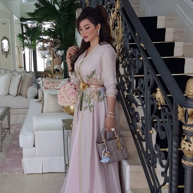 اختاري قفطانات مطرزة بالورود وميّزيها بحزام معدنيّ بالشرابات المتدلية التي ظهرت به لجين في العديد من إطلالاتها.