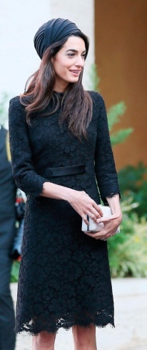 وكانت زوجة الممثل العالمي جورج كلوني، أطلّت منذ أيام خلال زيارتها الى روما، بفستانٍ أسود وصل الى ركبتها، مع توربان باللون نفسه على رأسها، ما زادها أنثوية وعصرية، مع الحفاظ على اللمسة الشرقية الراقية.