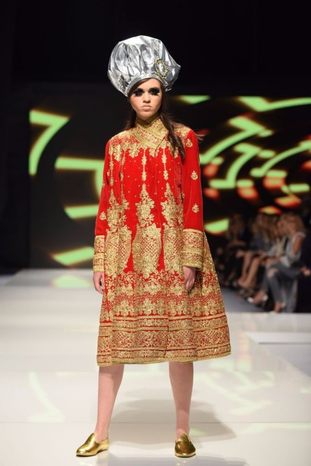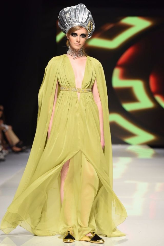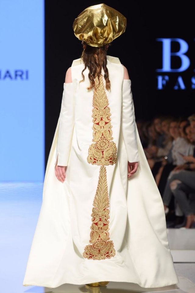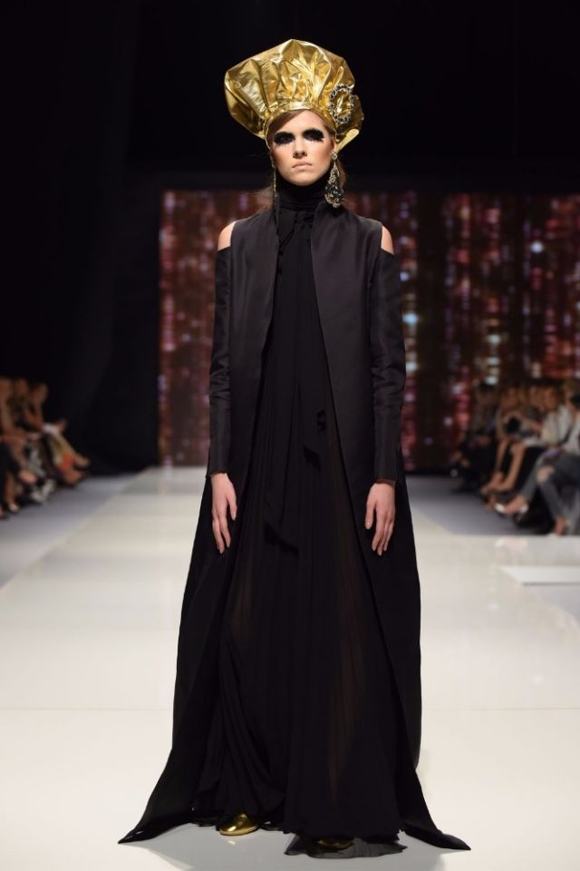 مجموعة ملفتة تحت عنوان "الحرملك" تألفت من العباءات الطويلة عكستها التطريزات المزخرفة وأخرى تميزت بغموض خامات البروكارد وأناقة الحرير وأنوثة الدانتيل. لمسة من الحداثة أضافتها أمل بالعمامات الذهبية والفضية والإكسسوارات الضخمة التي تزينت بها العارضات.
