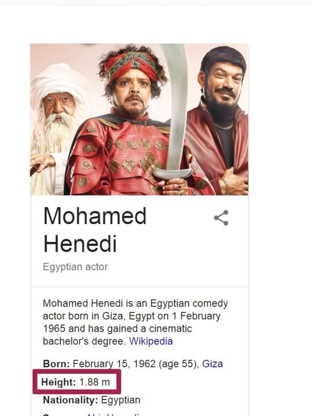 ولفت محمد هنيدي انتباه جمهوره الى طول القامة التي تمتع بها فريد شوقي، الذي بلغ 187 سنتيمتر، مشيراً الى أن طوله يبلغ 188 سنتيمتر، في حين يعلم الكثيرون قصر قامة هنيدي.