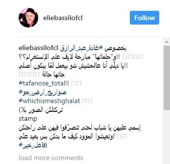 وعلّق على الصورة، وكتب: "بخصوص غادة عبد الرازق و"حلم****" مبارحة لايف على الإنستغرام؟؟!! يا ديلّي أنا عالحشيش شو بيعمل لمّا بيكون أصلي!! حاتها حالة. تفنص توتال. صواريخ ارض جو".