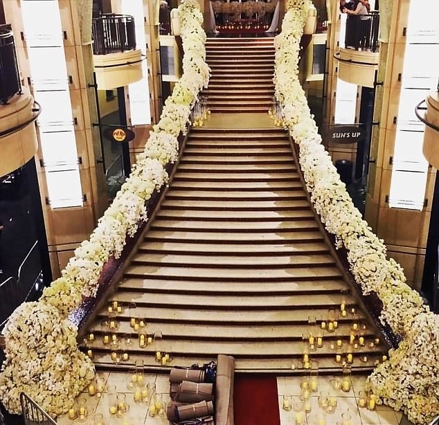 ووصلت كلفة الورود الى 500 ألف دولار، كما أحيت الفنانة العالمية ليدي غاغا الحفل، الذي أقيم في لوس أنجلوس.
