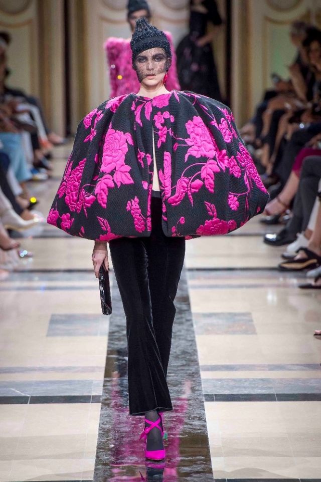 تُرجمت هذه الرؤية إلى تايورات باالرسوم الجريئة والورود الضخمة وقصات هندسية مبتكرة وفساتين تميزت بغرابتها وضخامة قصاتها المنتفخة عند الأكتاف، وشفافية ورقيّ خاماتها كالدانتيل والتول والمخمل والساتان والريش الناعم والحرير. أنوثةٌ مشاكسة أبرزتها طبعات الورود بألوانها العصرية كالأزرق والفوشيا وغيرها متعددة الألوان.