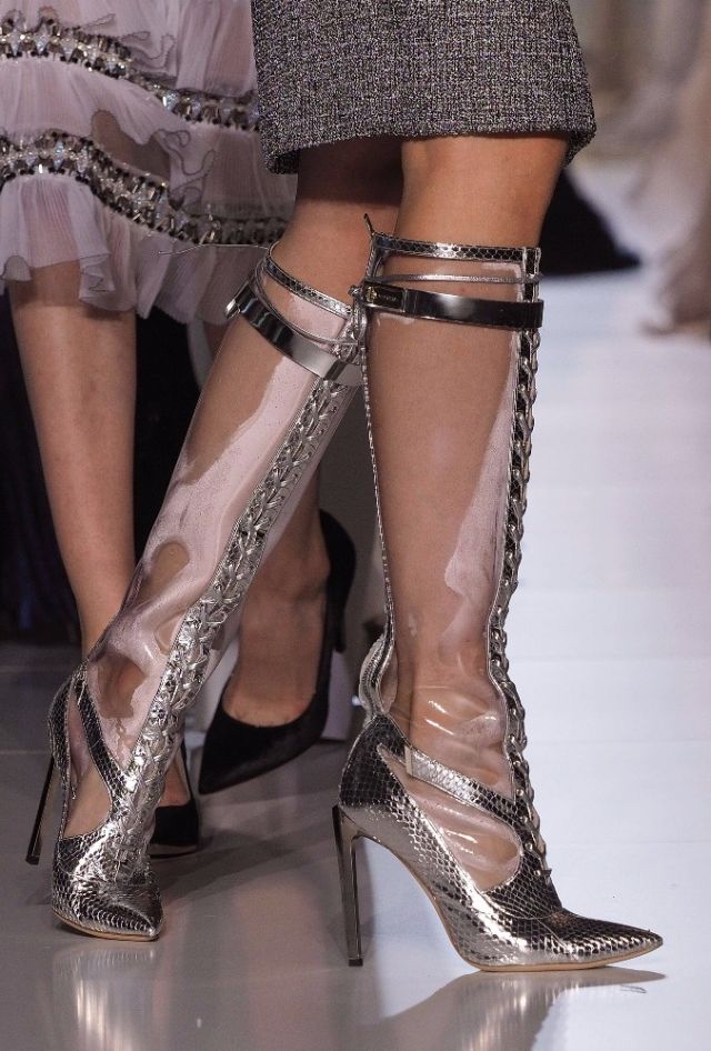 أما الأحذية فقد اتخذت طابعاً هندسياً مستقبلياً، فما عهدناه يوماً عملياً أو أنيقاً، شهدناه مزيجاً من الاثنين معاً. فجزمات رعاة البقر أصبحت برّاقة ذهبية ولمّاعة بعدما ضمتها دار مارغييلا إلى عالم الأزياء الراقية.