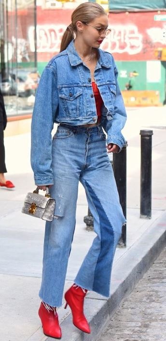 عصرية مبتكرة وحضور أنيق ستخاطبين بهما أبرز صيحات الموضة جراء اعتمادك أحذية وتوبات باللون الأحمر مع أزياء الدنيم.