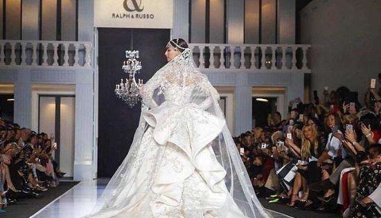 وأطلّت كابور على الـRUNWAY بفستان الزفاف الأبيض من مجموعة دار رالف اند روسو لخريف 2018.