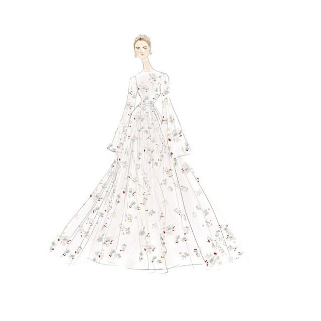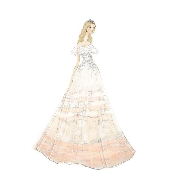 أما فستان الزفاف فقد صنع من الدانتيل شانتيي وزيّن بتفاصيل من اللؤلؤ استغرق تحضيرها يدوياً أكثر من ثلاثة أشهر.