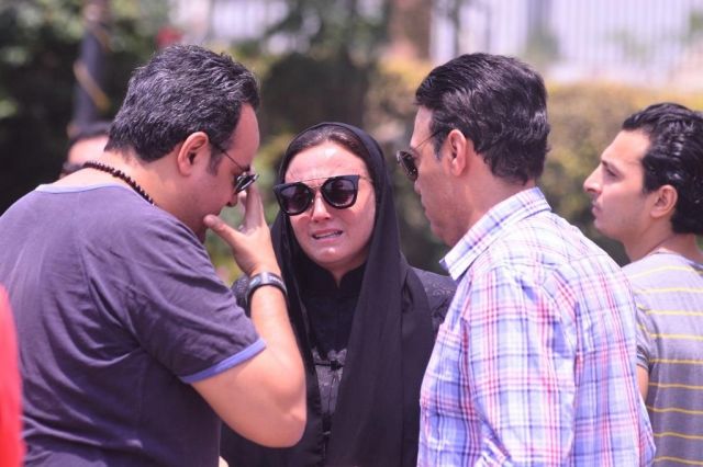 بالصور - النجمات يجهشن بالبكاء في جنازة عمرو سمير.. وهذه حالة والدته المأساوية