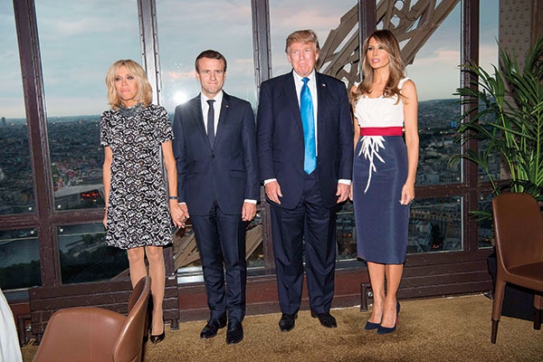 اتجهت الأنظار إلى الحضور النسائي الذي كان طاغياً هذا المرة. وبدا جلياً أن ميلانيا ترامب وبريجيت ماكرون تتنافسان على الأناقة. الأستاذة السابقة للغة الفرنسية اختارت طلاتها بعناية، ولم تخطئ أبداً وفق المهتمين في شؤون الموضة. فقد اختارت ثلاثة فساتين من دار لويس فويتون Louis Vuitton خلال الزيارة الرسمية الأميركية والاحتفال الوطني الفرنسي.