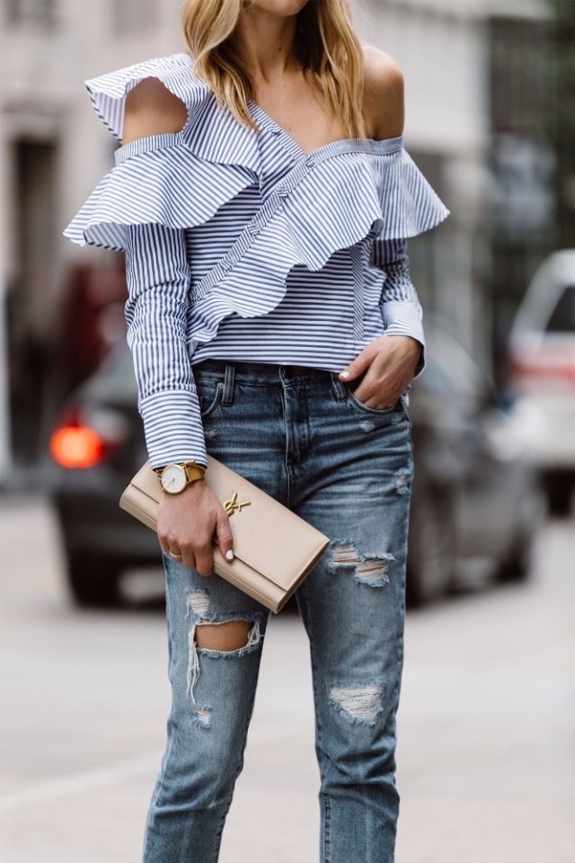صيحة غزت شوارع الموضة واقتحمت خزانة كل فتاة عاشقة للموضة، فليس من الممكن أن يمضي الصيف دون أن تتألقي بقميص من الكشكش، حيث أبدع المصممون بابتكار هذه القطعة وأحدثوا تغيراً جذرياً في القمصان ذات الأزرار. لإطلالة نهارية نسقيها مع جينز بقصة الخصر العالي مع حذاء ملون كالأزرق مثلاً! أما إن كنت غير تقليدية في لوكاتك وتحبين تسليط الضوء عَلَيْكِ اعتمدي القميص الفضفاض المتميز بأكمامه من الكشاكش مع كورسيه وجزمة طويلة.