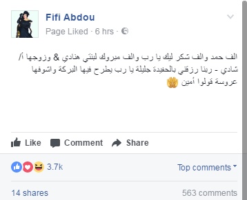 وعلّقت على الصورة، وكتبت: "الف حمد والف شكر ليك يا رب والف مبروك لبنتي هنادي وزوجها أ/شادي".