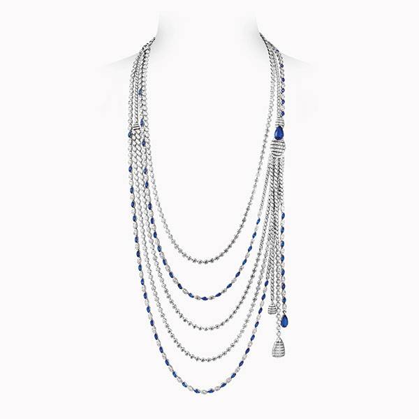 تلاقي حرفية دار شانيل الرفيعة في صناعة المجوهرات، ما تقدّمه هذه الدار الفرنسية العريقة في مجال الخياطة الراقية. هنا كلّ قطعة هي تحفة فنّية استثنائية مصمّمة لامرأة تعشق الفرادة والرقي، وتقدّر ساعات العمل الطويلة التي استغرقها نحت هذه القطعة والتقنيات التي تجعل حركتها انسيابية في يد المرأة أو في أذنيها أو فوق عنقها، إضافة الى ترصيعاتها الدقيقة بأغلى الأحجار وأثمنها وأكثرها ندرةً وأشدّها لمعاناً وبريقاً. كلّ قطعة من هذه المجموعة الراقية فيها لمعان ضوء الشمس فوق المياه الزرقاء البلّورية، تدرجات متفاوتة من الأزرق البحري الجميل مع لمسة ناعمة لرغوة المياه. مراكب بأطقمها الأنيقة وضيوفها الهاربين الى الأفق اللازوردي... مشهد يوحي بصيف يُبحر برقيّ ورفاه لا يتكرّران.