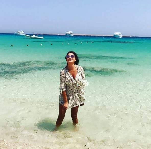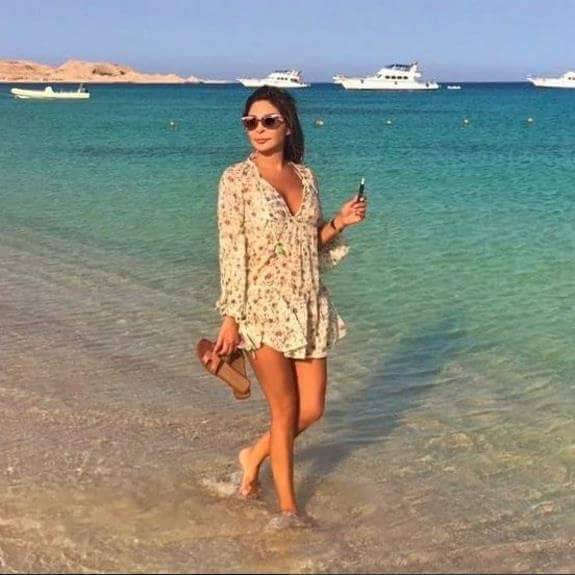 وأطلت على جمهورها بإطلالة بسيطة ورائعة وهي على شاطئ الجونة بالغردقة بفستان صيفي ناعم كانت قد ارتدته في المسبح بفاريا.