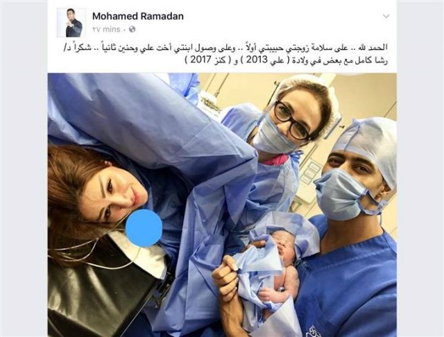 شارك الممثل المصري محمد رمضان جمهوره عبر شبكات التواصل الاجتماعي الصورة الأولى لمولودته الجديدة "كنز" من داخل غرفة العمليات فور ولادتها.