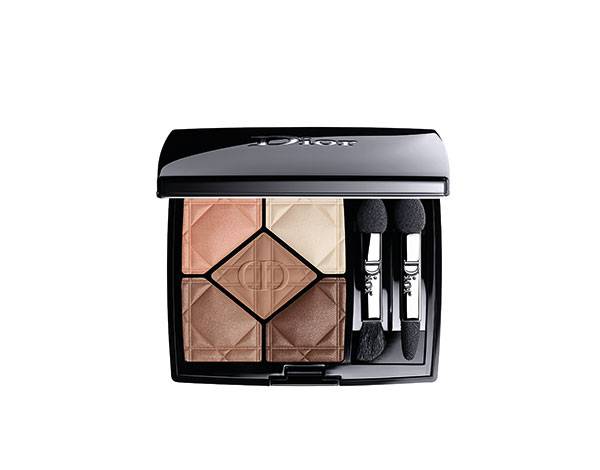 لتجميل العينين استعملي علبة الظلال الخماسية الألوان Dior 5 Couleurs High Fidelity Colours & Effects Eyeshadow Palette in Undress no.647، وزّعي الظل البنيّ المعتدل فوق كامل الجفن المتحرّك، والبني الداكن عند طيّة العين ثم امزجي اللونين في شكل غير محدّد. بعدها، انشري الظل العاجي الفاتح تحت رسمة الحاجب. لإضاءة العين وتوسيع النظرة، وزّعي الظل الأحادي الذهبي Lancome Le Metallique Liquid Eyeshadow in Or Farniente no.03 عند زاوية العين الداخلية، وحدّدي به خط الرموش السفلية.