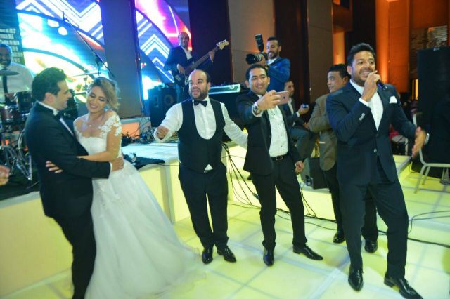 بالصور - دنيا سمير غانم ومحمد عادل إمام ونجوم الفن يرقصون في زفاف نجم مسرح مصر... ما رأيكم بإطلالات النجمات؟!