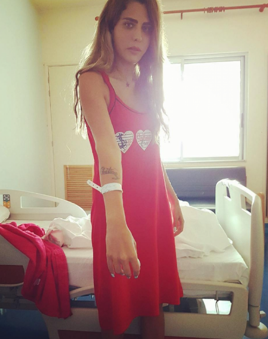 وكان حساب "شرطة المشاهير" على تطبيقة "انستغرام" علّق على صورتها في المستشفى قائلاً: "سلامة قلبك، بس وينو صدرك؟".