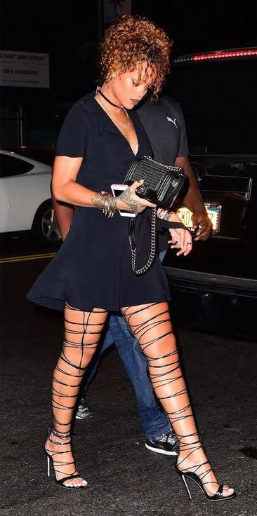 يبدو أن صندل Riri من Dsquared2 هو المفضل عند النجمة مايا دياب، ويتميز هذا التصميم بشرائط رفيعة وطويلة للغاية تلتفّ حول أربطة الساقين لتصل إلى أعلى الركبة. إذ اعتمدته للمرة الأولى في العام الماضي، ثم رصدت في وقت سابق من هذه السنة منتعلة هذا الصندل أيضاً، إنّما اختارته باللون الذهبي المعدني. ونشرت مؤخراً صورة لها بهذا التصميم الجذاب الذي يبلغ ثمنه 1,615 دولار أميريكي مع فستان أسود قصير وعقد ذهبي من Versace. وتجدر الأشارة إلى أن مايا ليست الأولى التي اعتمدت هذا التصميم، إذ ارتدته قبلها العارضة كيندل جينر والنجمة العالمية ريهانا.