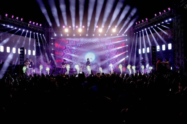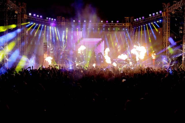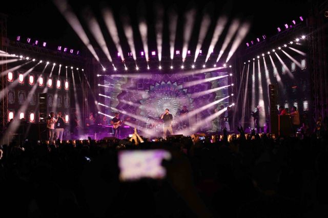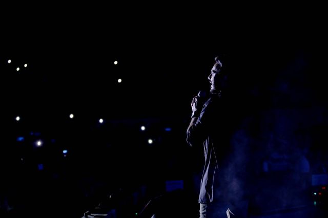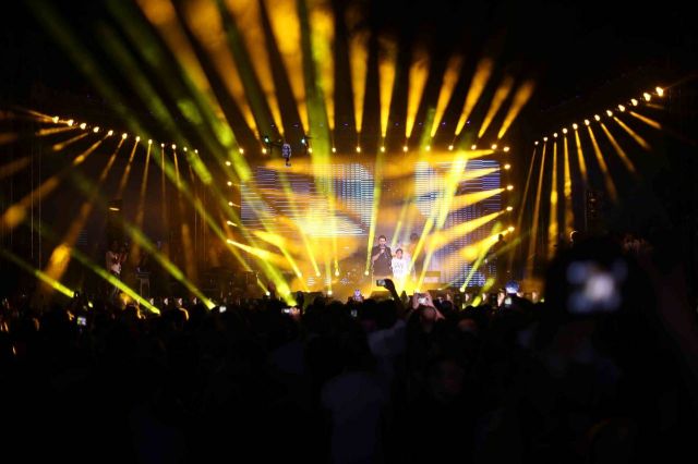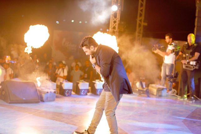 صعد تامر المسرح في منتصف الليل وسط عرض ضخم بالالعاب النارية بتوقيع الفنان احمد عصام الذي عاد للتعاون مجددا مع النجم تامر حسني بعد انقطاع دام لسنوات .