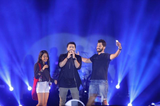 بالصور: من الفتاة التي سمح لها تامر بالغناء بجواره على المسرح؟