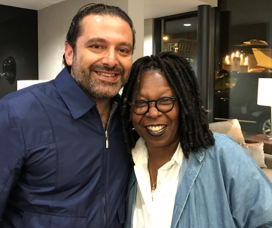 ونشرت ووبي صورتها الى جانب رئيس الحكومة اللبنانية سعد الحريري، خلال لقائهما في أحد المطارات.