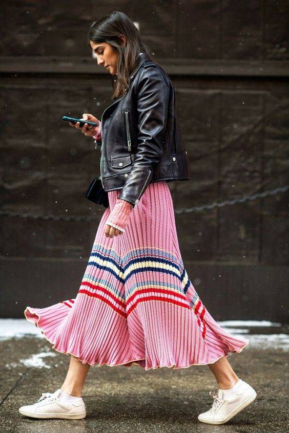لإطلالة أنثوية نسقيها مع تنورة طويلة وأضيفي لمسة عفوية بانتعال حذاء رياضي أما لإطلالة مسائية نسقي السترة مع فستان قصير واختاري السترة الجلدية مرصعة بالأحجار، أو مع الشراريب الطويلة.