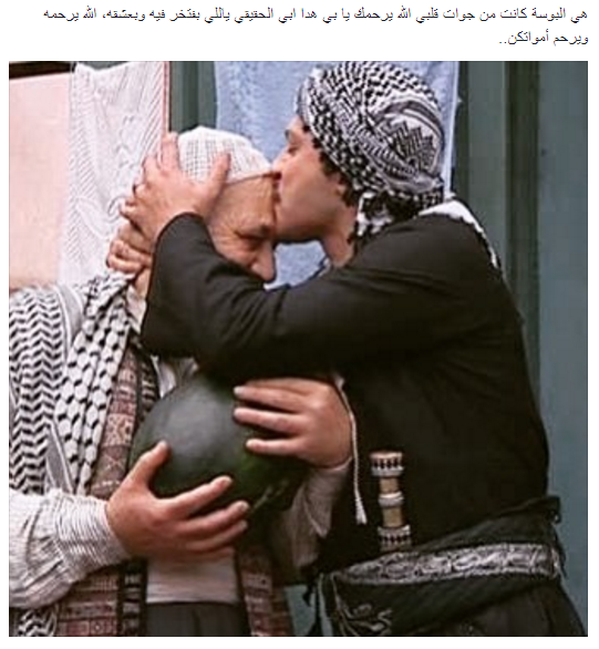 وعلّق شرف على الصورة كاتباً: "هي البوسة كانت من جوات قلبي الله يرحمك يا ابي الحقيقي ياللي بفتخر فيه وبعشقه، الله يرحمه ويرحم امواتكن".