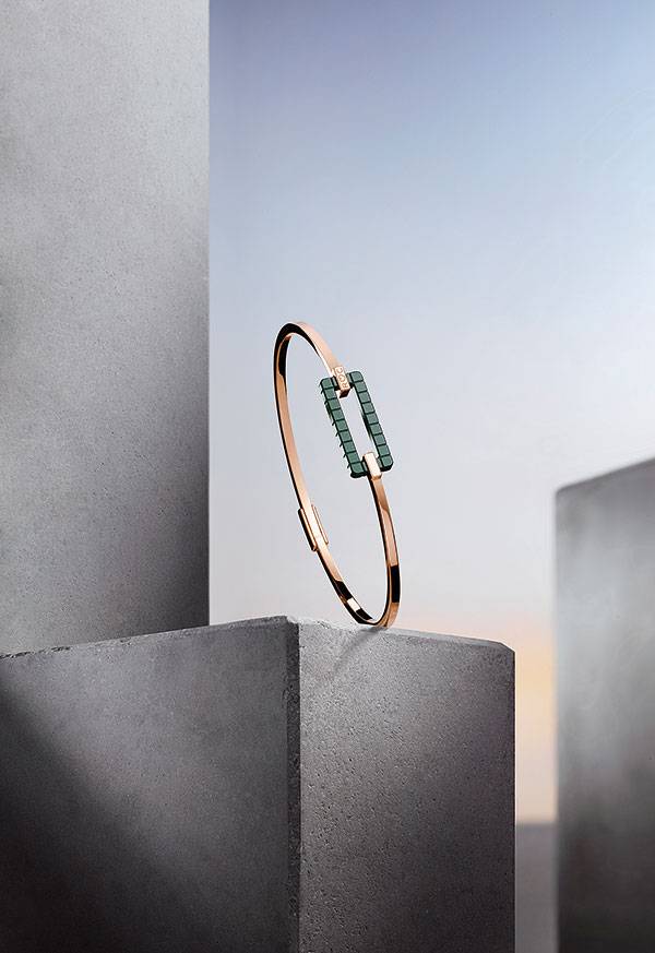 تم استيحاء الإصدار المحدود لمجموعة مجوهرات (RIHANNA ♥ CHOPARD) من الحضور القوي والثقة العفوية التي تتميز بها ريهانا. فقد تمحورت المجموعة حول الأشكال الهندسية البسيطة بخطوطها الحادة والواضحة، وجمعت بين طابع الأناقة العصرية والتصميم النقي، مضفية بذلك على شكل (Ice Cube) الكلاسيكي من شوبارد إحساساً قوياً بالذات، وأدخلت على المجموعة تصاميم جديدة مع أحجار الخزف الملون. تضم المجموعة 9 قطع من المجوهرات المصنوعة من الذهب الوردي بعيار 18 قيراطاً المصادق عليه بشهادة التعدين العادل (Fairmined). وتميزت التصاميم بزخارف ذات خطوط مستطيلة تربط بين مكعبات الذهب الوردي وقطع الخزف الصلب بلون «أخضر الغابات» الذي اختارته ريهانا شخصياً.