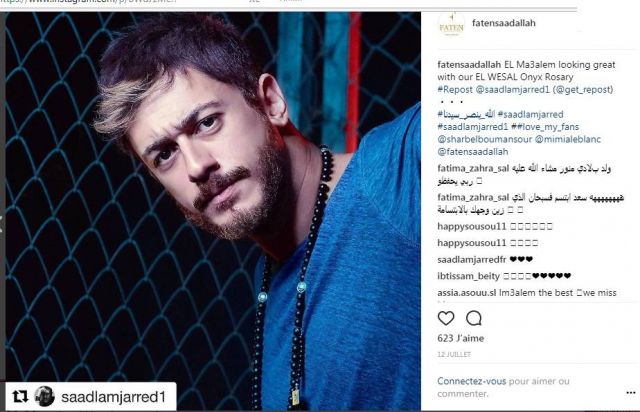 "هويتك منذ يافع.... وجدت حبك نافع "،"يا باب فضل و تاج عدل جد لي بوصل قبل المنية"، "و إن إكتفى غيري بطيف خياله فأنا الذي بوصاله لا أكتفي"،"يا حبيبي ذبت فيك ما انتهيت قلت فيك ما اكتفيت"، "الغرام له أهل"، "عيدوا علي الوصال فإن شوقي لكم يزيد"، "اللهي انت مقصودي و رضاك مطلوبي"،" إن فاتك أن تكون محبوبًا، فلا يفوتك أن تكون مُحبً "بهذه العبارات المكتوبة في الاكسسوارات من اساور وقلادات المستوحاة من السبحة مع النقش بالخط العربي، التي يرتديها سعد لمجرد مؤخرا من جلسات تصوير بعدسة اللبناني شربل منصور، وهي من توقيع مصممة المجوهرات المصرية فاتن سعدالله ، التي اختارت ان يكون عنوان مجموعتها الجديدة لسنة 2017 "الوصال" استقتها من أذكار صوفية .