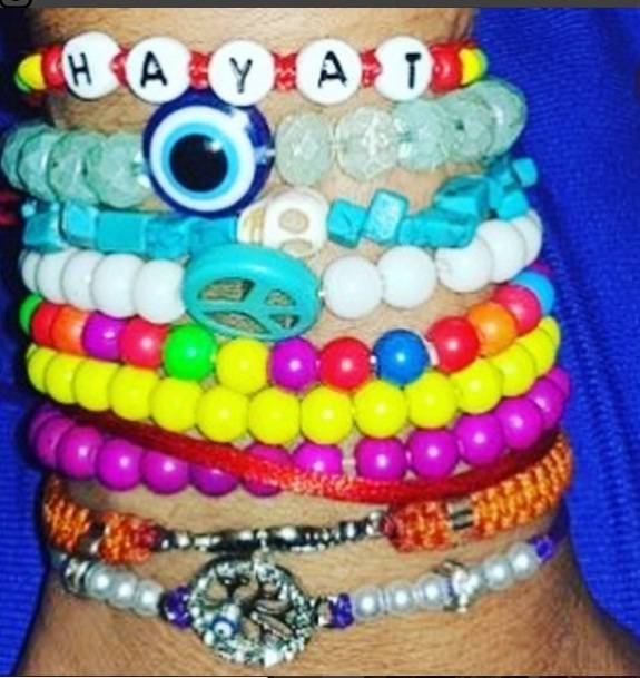 ويبدو أن صاحب أغنية "غلطانة" لم يعد يرتدي اساور المغربية حياة بنعبد الله،بحثا عن التجديد والتغيير لمرحلة مابعد السجن التي دفعته الى الدخول في التحدي للحفاظ على مكانته في المشهد الفني العربي، مستعينا بعبارات صوفية في اكسسوارات تلهمه الصبر على حاله،بالرغم انه يحرص دائما على ارتداء خواتم مزركشة برسوم من بينها خاتم يحمل رسما "لرأس ميت"، أو ما يطلق عليه باللغة الفرنسية "Tête de Mort" الذي يرمز للتمرد في عالم الموضة فلسفتها هي أن تعيش إلى أقصى حد حتى يأتي الموت، وهو الرمز المتداول لدى مشاهير الفن من الدرجة الاولى.