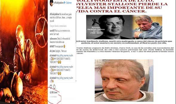 تداولت تقارير إعلامية ومستخدمون لشبكات التواصل الاجتماعي خبر وفاة النجم العالمي سيلفستر ستالون مستندين الى صور مركبة، في حين أن الممثل الأميركي ما يزال حياً يرزق.