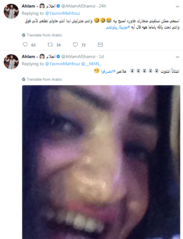 بالصور - أحلام تهزء فتاة على "تويتر" وتتهكم على أنفها رداّ على تهكمها عليها
